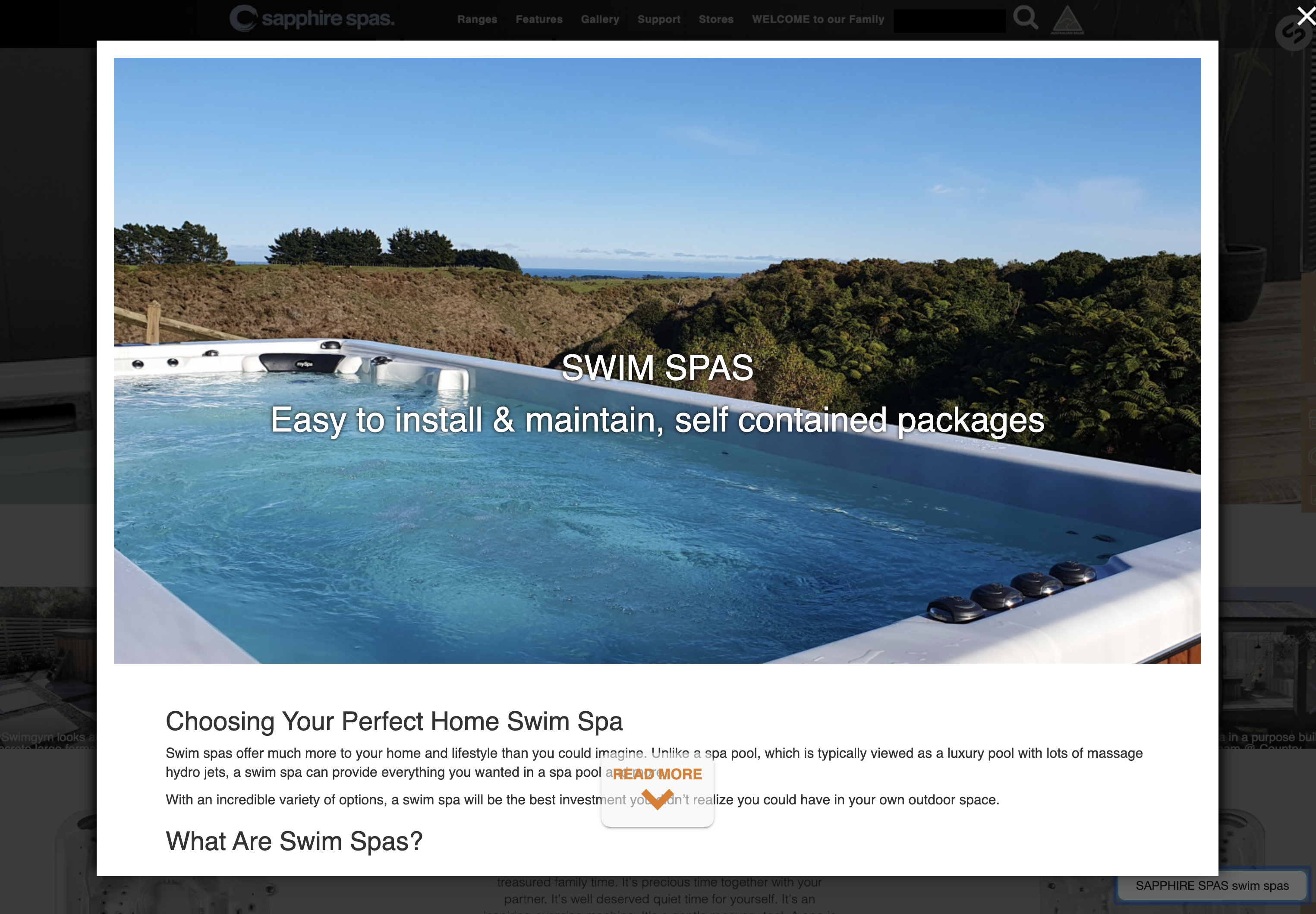 - create a menu option or button on a page to link to ‘spa pools’ & one to ‘swim spas’