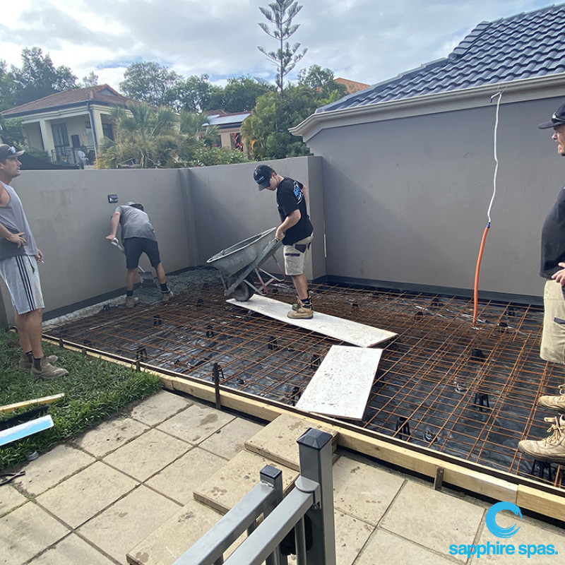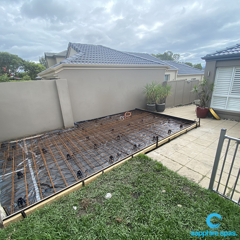 The starting point for any project is planning, having already visited Sapphire Spas and selected their preferred spa the next step for the customer was to get planning approval from council. What planning you require can vary depending on your state and council. The client engaged a local construction engineer to assist with designing a compliant slab and producing technical drawings to the council’s required standard. In this instance the application was in order and approval was granted for the project.
