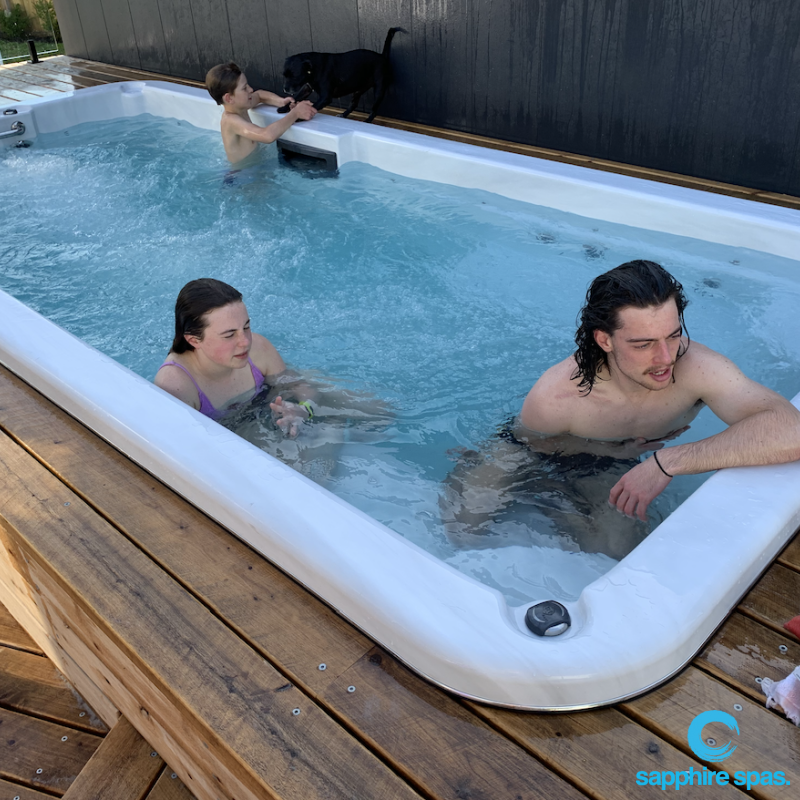 Most beaches don’t allow dogs, especially during the summer, but our dog loves swimming. That’s when a swim spa comes in handy because you can let your dog swim especially in the summer when it’s really hot and they’re not allowed at the beach. You might end up with a bit of dog hair in the water but the filter will deal with that in no time.