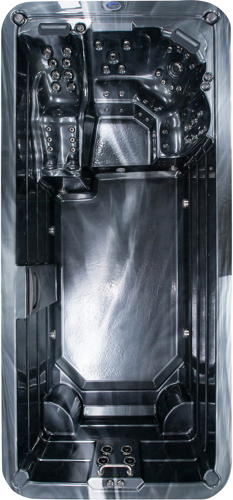 Cool down seats with extra standup massage jets are included in the EXTREME models of the myWorkout series. These seats are positioned at the 'swim end' for you to recover after a swim or exercise session